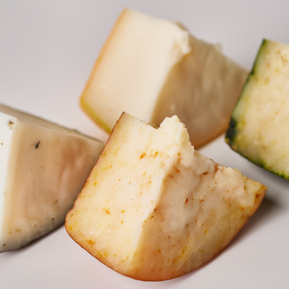 Вишукане поєднання чотирьох видів козиних сирів, створених з любовʼю до натурального смаку. Асорті відкриває палітру ароматів: пряний шафран, горіховий пажитник, освіжаюча лимонна трава та ніжний молодий сир. Ідеально смакує до вина, меду, фруктів аюо як самостійна страва для гурманів.